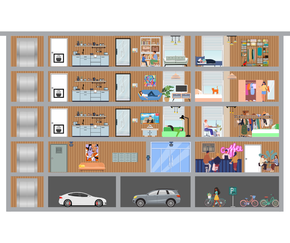 Indien gewenst kunnen ook gemeenschappelijke ruimtes, zoals een lobby of vergaderruimte, worden aangesloten op dezelfde infrastructuur.